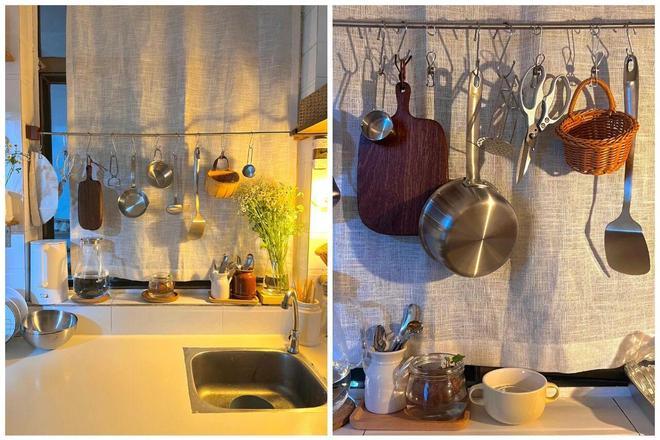 网友@桃小桃:真心建议给厨房窗户安装一根不锈钢挂杆,平时用来晾抹布太方便了;搭配几个挂钩,还能收纳一些零碎。最关键的是,它不会占用到台面的空间。