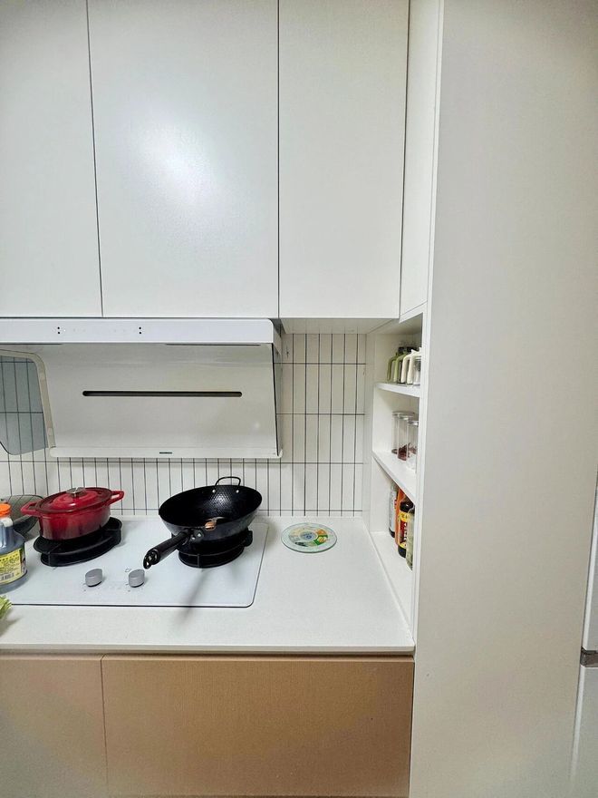 网友@雪球家:装修最不后悔的地方,就是在灶台侧面做了一个三层调料壁龛柜,日常操作行云流水,简直太爽了。