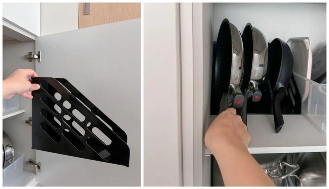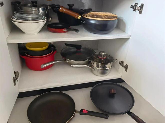 锅子能够说是厨房最大的收纳痛点了,一是形状大小不同;二是日常闲置率很高,毕竟常用的锅就那两口。