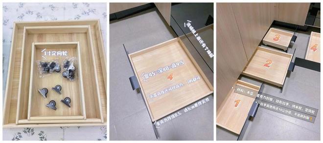方法并没有想象中那么复杂,只需要给木盒或者托盘底部安装4个定向轮就可以了。虽然深度比较浅,但放点零碎还是较为方便的。