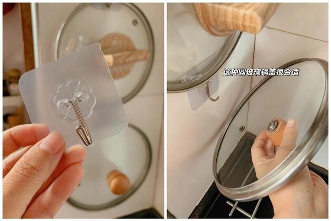 网友@伊闪伊闪:我线个锅盖收纳。只需要把“免打孔强力挂钩”依次粘贴在烟道上,锅盖就可以轻松挂上去收纳了。也许时间久了挂钩会掉,但我用了1年多一点问题都没有。